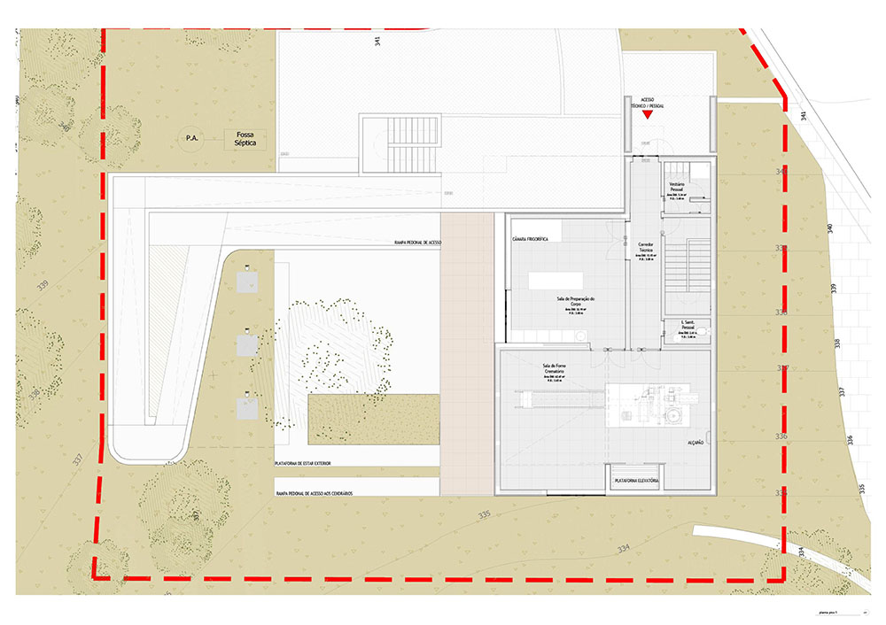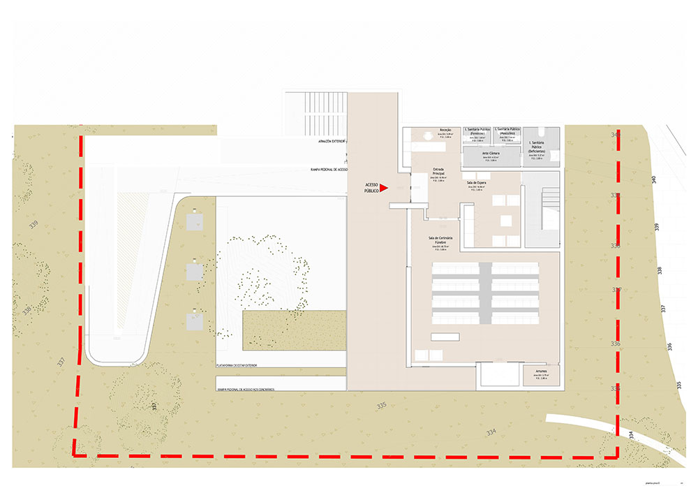 Este novo edifício será parte integrante de um cemitério premiado ao nível da arquitetura paisagista o que elevou a preocupação do seu enquadramento com a envolvente e com os edifícios já existentes, principalmente com a capela adjacente.