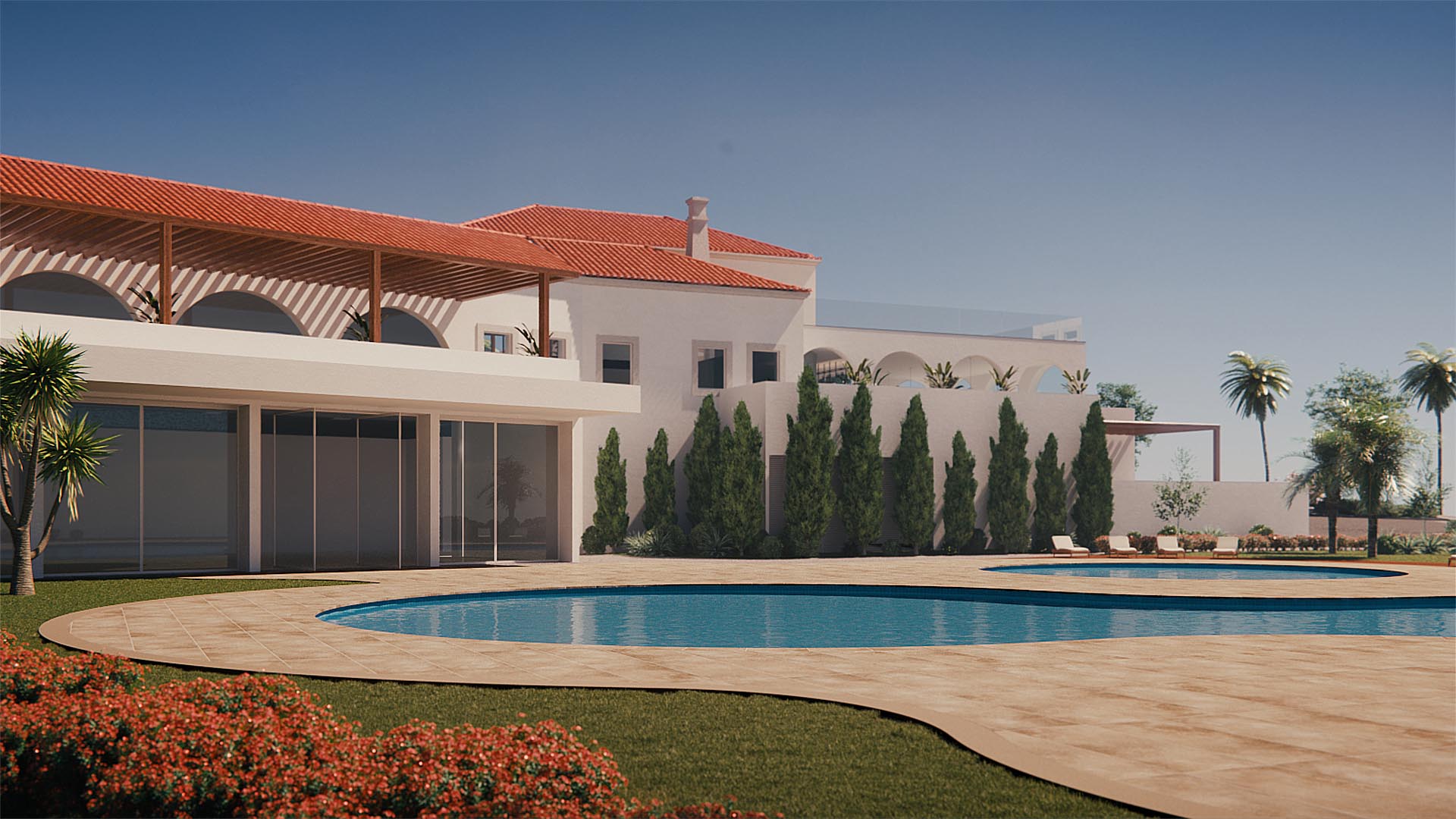 A intervenção neste Aldeamento Turístico, pretende introduzir características contemporâneas e funcionais ao nível do Edifício principal – “Praça” e dos espaços exteriores envolventes. São propostas alterações de fachada que propõem a beneficiação do contexto arquitetónico e espacial do empreendimento.
